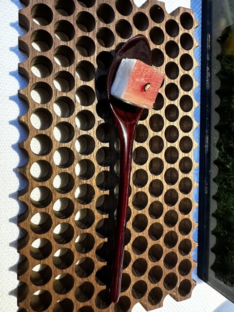 嬬恋村の超絶サーモンv 3 梅ソースと泡 余韻の香り端材からとった出汁のソース