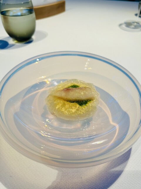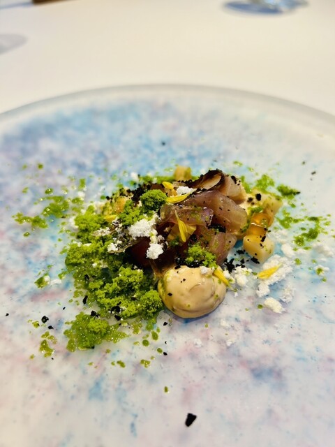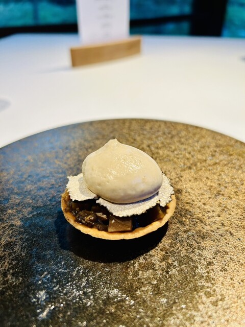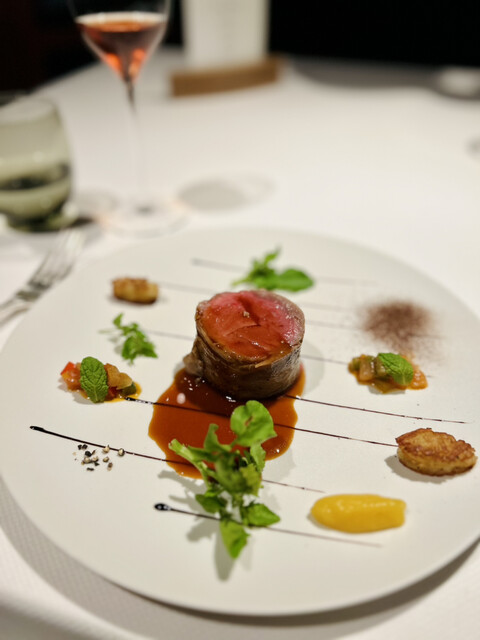 その後店内に移動。シックな店内で美しい料理を楽しむ。