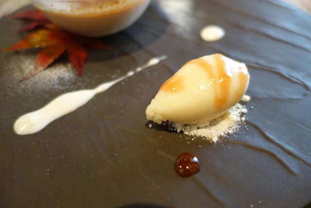 店内の窓からも、紅葉が垣間見え、まるで額縁に入った