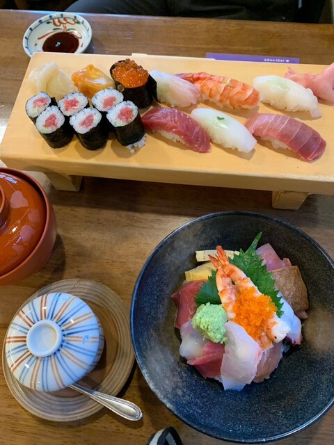 上刺身定食をオーダー。ボリューム満載です。ご飯は酢飯です。茶碗蒸しもついてました。団体利用だったので捌いてからの時間が経過していたように思いました。次回は握りのコースにしてみようと思います。ご馳走様でした。