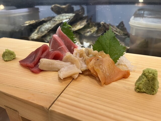ボリューム満点のお刺身の盛り合わせや牡蠣フライ、だし巻き玉子などどれをいただいても美味しくメニューも豊富で安定感のあるお店です。