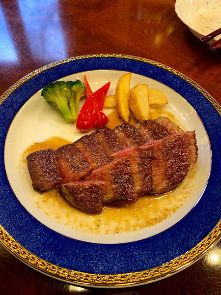 普通、ステーキハウスの場合、焼き加減はレア、ミディアム、パンかライスか、いろいろチョイスはありますが、この店は一切ありません、ステーキの焼き方も同じ、セットはサラダとライスと味噌汁と野沢菜漬けです。ただ、この「引き算」がこの店を虜にさせると思いました。
