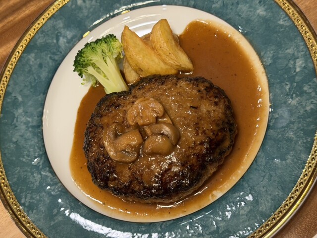 ここのハンバーグは自信を持ってオススメできます。プレミアム信州牛を贅沢に使用していて、箸を入れた瞬間に肉汁があふれ出すほどジューシー。噛むたびに濃厚な旨みが口いっぱいに広がり、肉の質の良さをしっかり感じられる逸品です。