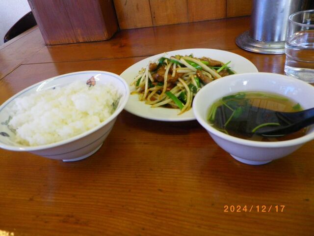 久々訪店したお店はいつもながら混んでいた。ニラレバ炒めに半ライスを追加して定食にしてもらったが、以前ついたスープは今はなかった。