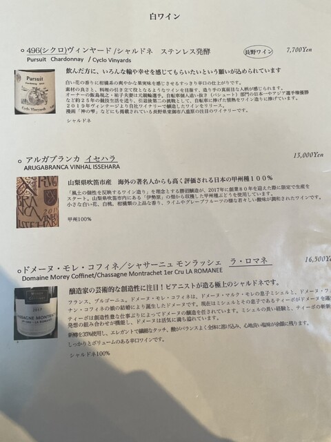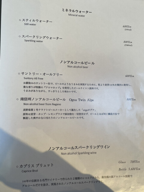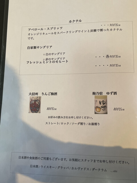 2023年10月日曜日14:00予約の上、往訪。なお、席は満席表記で予約が前提となっております。店内は空席がありますが、無理して入れないスタンスのようです。以下をオーダーしました。