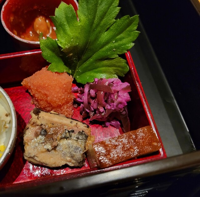 芝漬け、薩摩揚げ、鰯旨煮、明太子