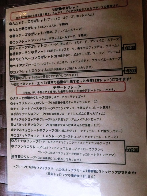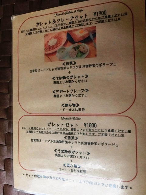 ランチはオードヴル、ガレット、飲み物のセットとそれにクレープがつくのの2種類。