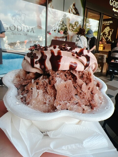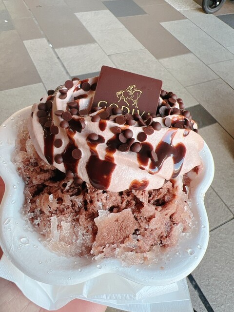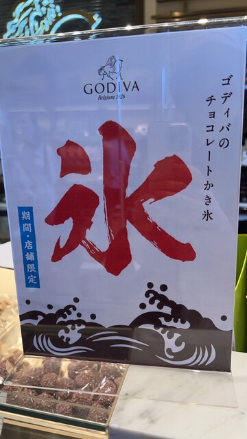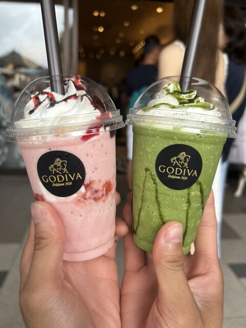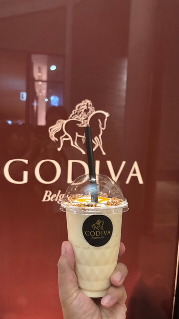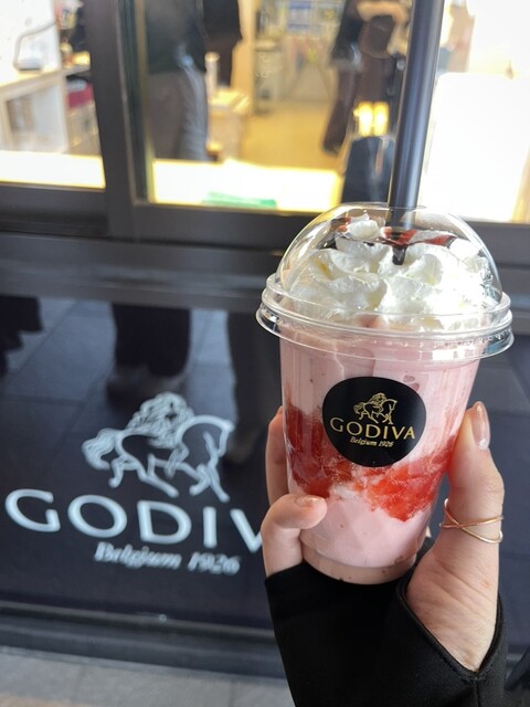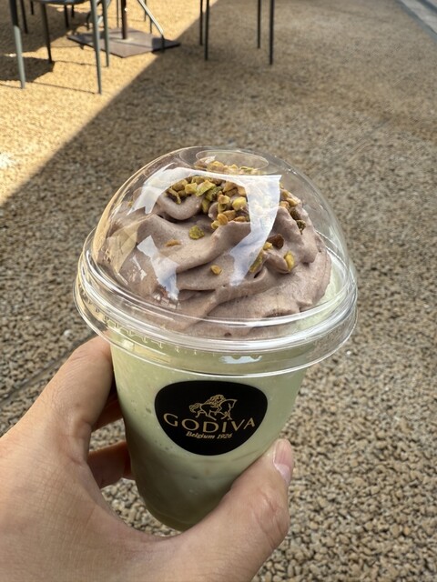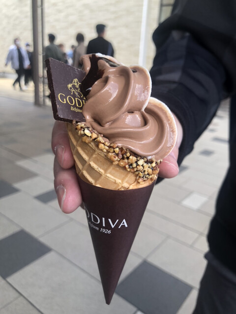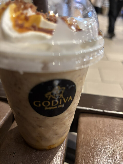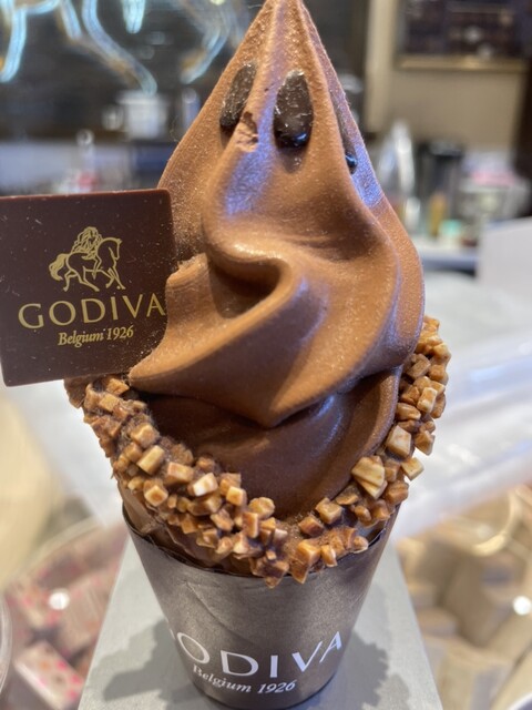 GODIVAのチョコレートデザートがいろいろ楽しめる。カップアイスから、ドリンク、ソフトクリームなど。いートインないが、目の前にベンチ沢山あるので困らない。