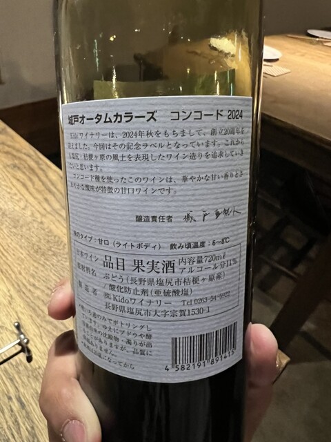 ワインにはあまり詳しくないため、赤ワインのボトルをお願いしましたが、料理との相性とワインの好みと味わいを相談して数種類を提案して頂きました!決めたのは、地元長野で醸造された「城戸」という赤ワイン!