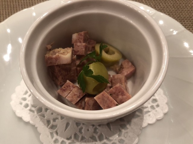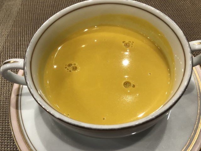 【前菜】真鯛のカルパッチョ仕立て…鯛とドレッシングの相性が良かった。/【スープ】かぼちゃのポタージュ…ちょっと量が多く濃厚...