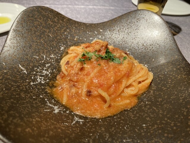 パスタの量が少なーい。美味しいだけに残念。もうちょっと食べたいです。