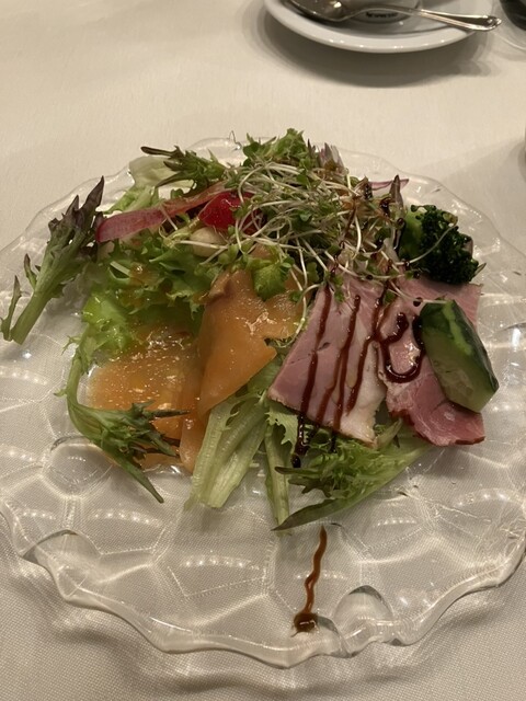 スモークサーモンとハムがあしらわれ