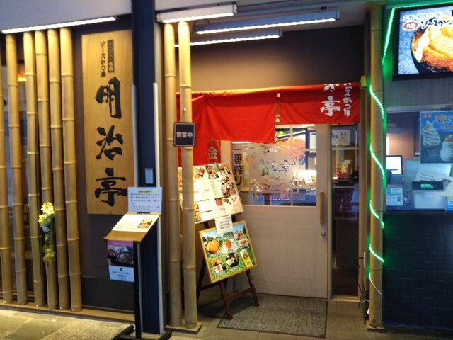 地元の信州駒ヶ根ではお客様が訪れるときや、お祝い事には「ごちそうを」と駒ヶ根の特色のあるお料理を食べますが、その中でも一番人気のあるのが「ソースかつ丼」です。 大人から子供までが喜んで食事のできる一品です。今やソースかつ丼の店「明治亭」と皆さんが答えますが、元々は会席料理や宴会料理を中心とする他に生け簀を店内に置活魚も扱う日本料理店で、職人がソースかつ丼にも材料の仕入から下準備、仕込など職人の厳し...い目で調理されるかつ丼は、地元産信州産の良質なロース肉が柔らかく深い味わいと、地元産自家製ソースの独特な味わいがたまらない、一度食べたら忘れない味です。