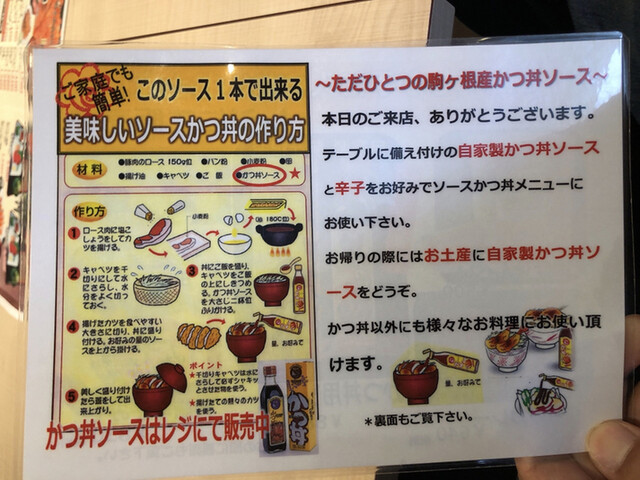 ごはんは、やややわらかめ。ソースが足りない場合は、卓上にソースカツ丼用のソースで、追いソースを。