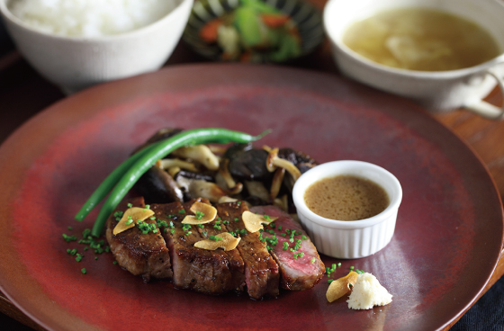 黒毛和牛のステーキ りんごと醤油の門前ソース (by お店)