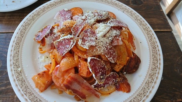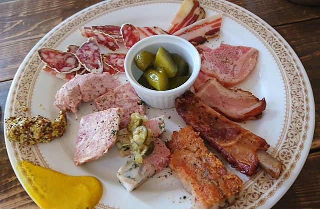 アルザス料理となっていますが、アルザスに行ったけどソーセージやハムを食べ無かったので(手作り)の文字に引かれ訪問。小さなお店ですがお客さんが沢山いました。食事の提供に少し時間が掛かると言われたけど、案外すんなり出て来ました。皆さんが絶賛していたナポリタンとサラダ、ハムやサラミの盛り合わせを頼みました。ハム、サラミ、リエットはどれも絶品!ナポリタンは、まあ普通でした。ハム、サラミは販売もしているので、美味しいサラミが食べたくなったら買いに来ます!
