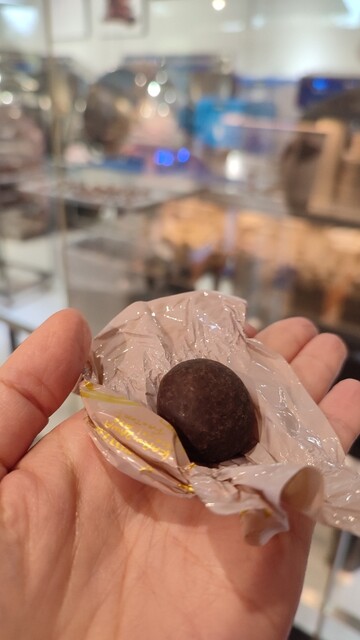 中のマカデミアナッツも大きく、カカオの香りと苦み、砂糖の甘みが合わさって大人のチョコレートボールという感じです