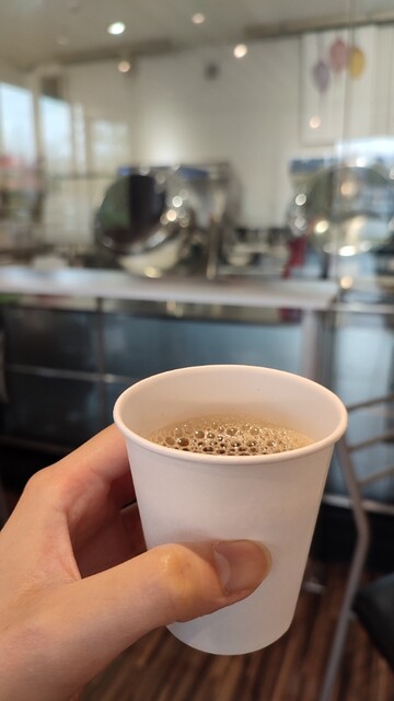 店内には数席の椅子とテーブル、セルフサービスでコーヒーやお茶がのめるマシーンもありとても充実していました