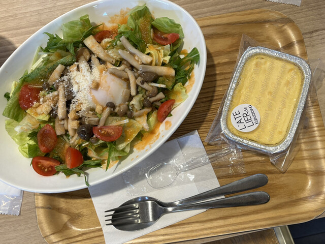 メインを他のお店で調達し、こちらではサラダとスープ、ドリンクとデザートを調達。