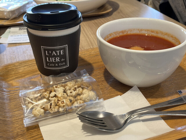スープはMとLがあり、Mにしましたが、思った以上にたっぷり。トマトが濃厚で、喩えるならトマトジュースのスープ。ミネストローネとは違う、トマトを味わう濃密スープでした。ベーコンもたっぷり。