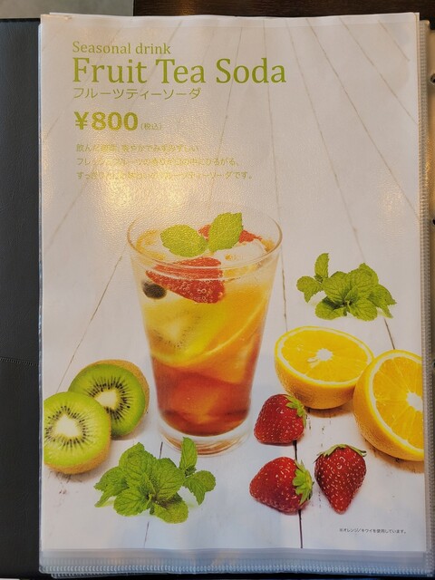 コーヒーはライトで普通でした。フルーツティーソーダはオレンジなどフレッシュな果物が沢山入った炭酸が効いたソーダ。甘酸っぱくて美味しかったです。