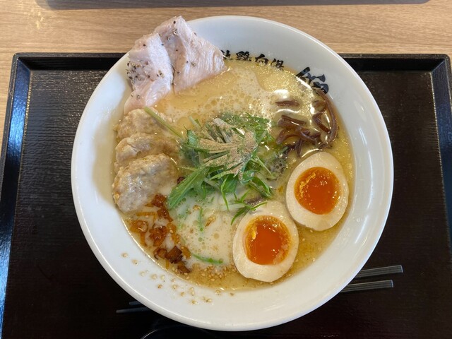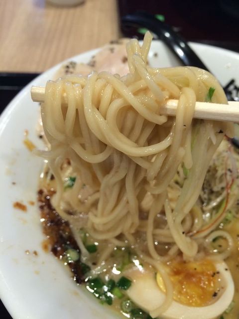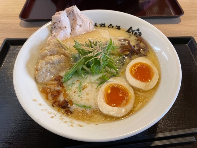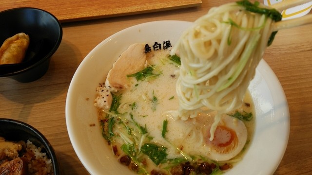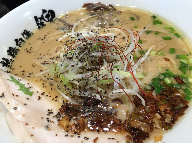 ラーメン錦グループで唯一「らーめん錦秋田分店」だけが使用する濃熟鶏白湯は、繊細な鶏の旨味を最大限に引き出した濃くて優しくまろやかな味わいが特徴。そのスープに、北海道産小麦100%使用の つるつるでもちもちの自家製ストレート麺をあわせる。