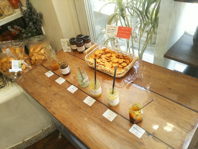 ジャムの試食ができて、クラッカーと一緒に置いてくれています。ほとんどのジャムを試食できるので気になったもの...