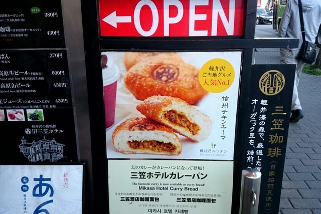 軽井沢の人気ご当地グルメの一つ、三笠ホテルのカレーパン。いくつか食べられる店舗がありましたが、通り道にあったこちらをチョイス。通常品とプレミアム品の2つを購入しました。お腹いっぱいだったので、翌日リベイクしてから食べることに…。