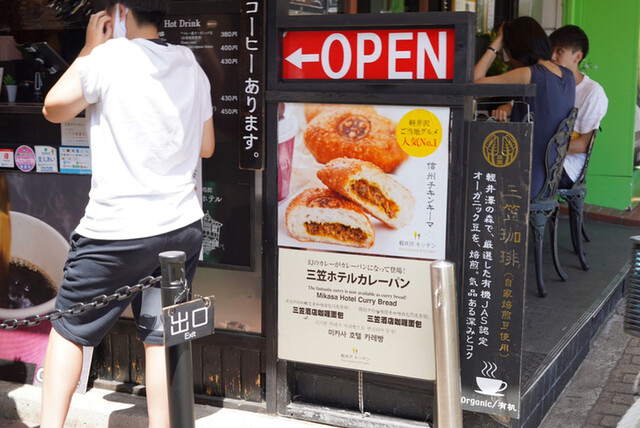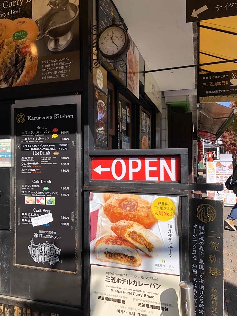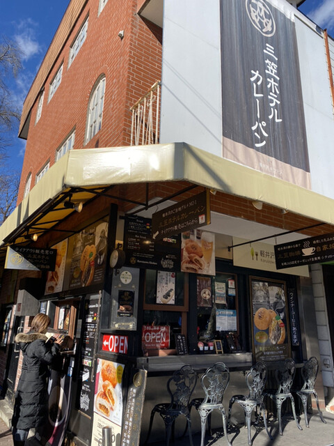 軽井沢のロータリー近くにある「三笠ホテルカレーパン」の店です。