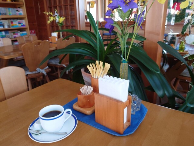 看板には、ペンションとあり、カフェ店内も吹き抜けがあって、建物もペンション風。ペンションの食堂で、カフェ営業を行っているのかと思われます。宿泊営業は、確認できませんでしたが…。