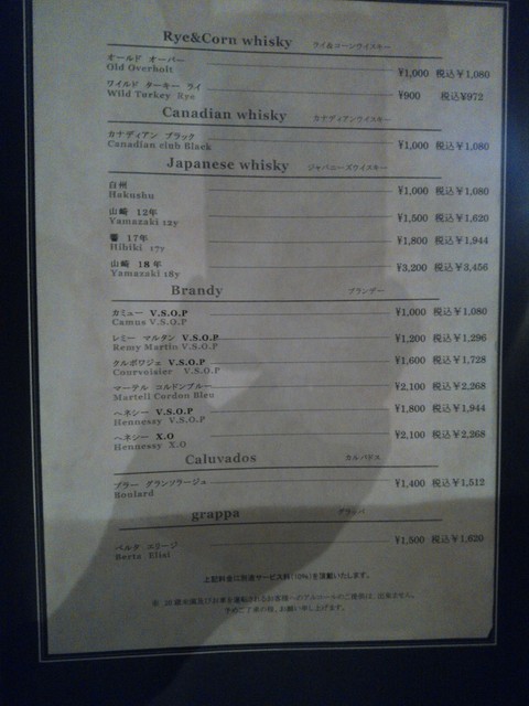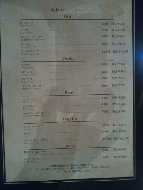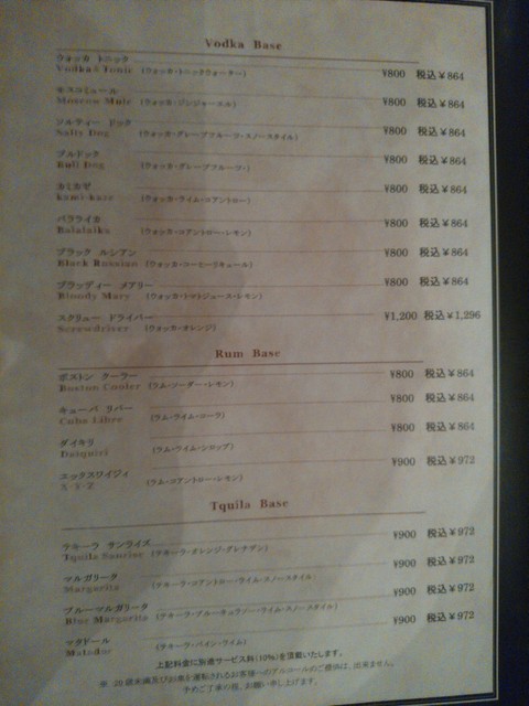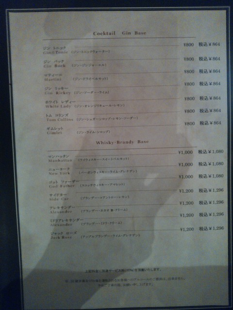 ●その外、ビールや別料金のカクテル(グラスホッパー、エリージS、Boulard)を注文しました。