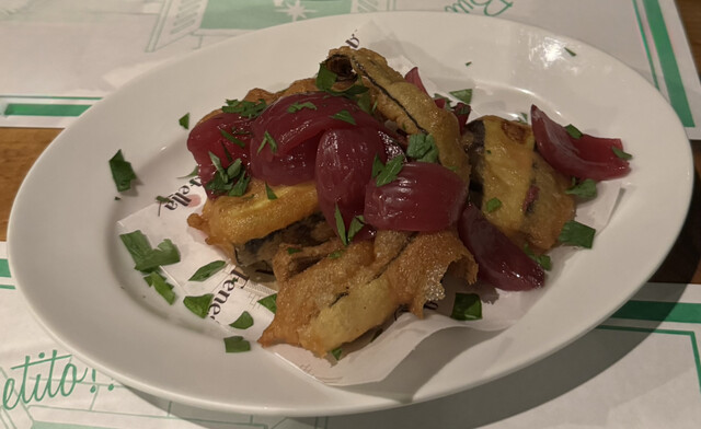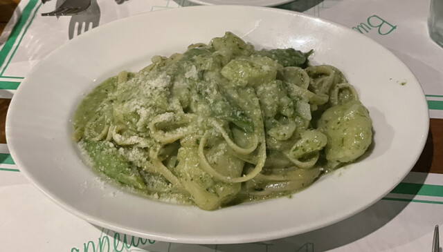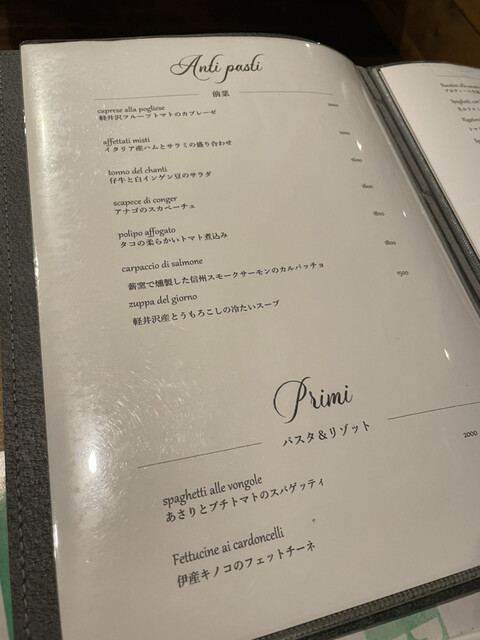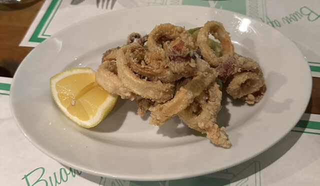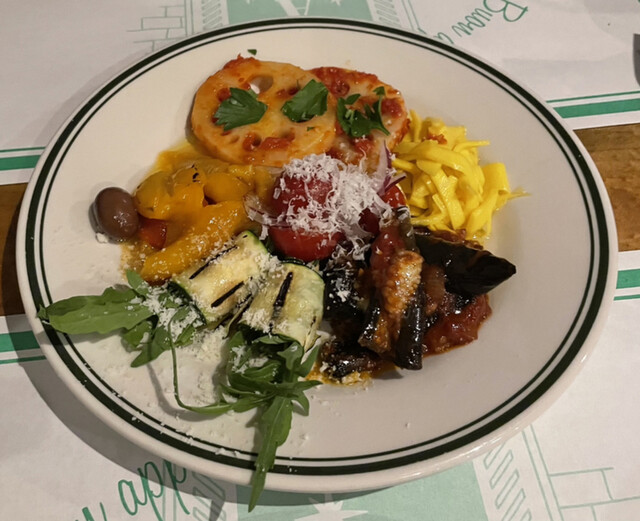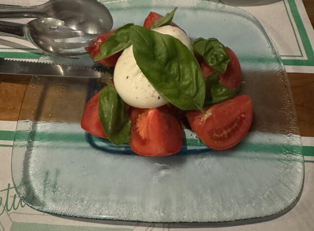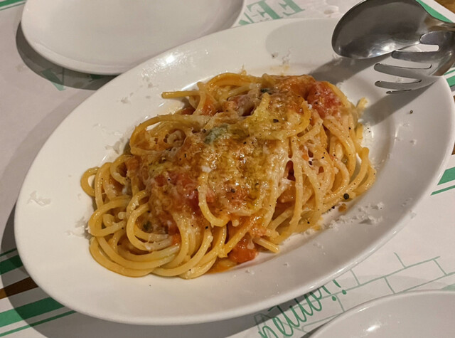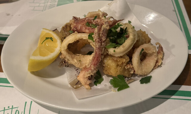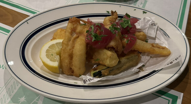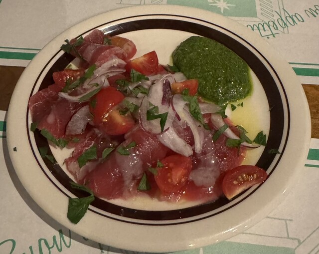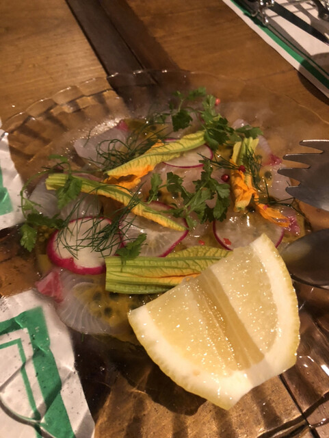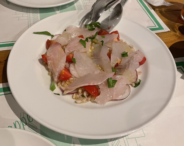 この夏、3度目の訪問です。パスタ二品に、カルパッチョとフリット。