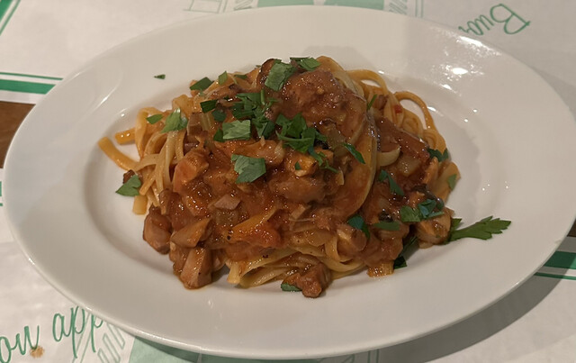 手打ちうどんのようなシャラティエッリ、麺もソースも美味い!