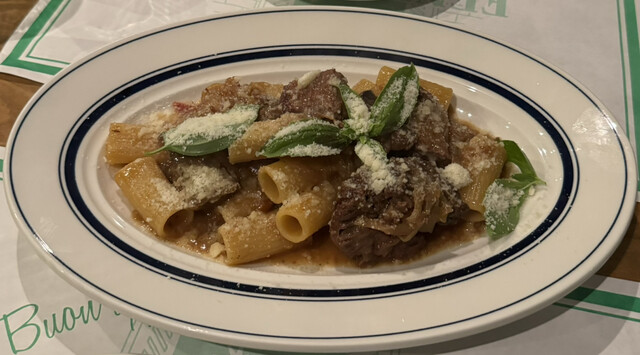 たっぷり玉ねぎとお肉の煮込みソース リガトーニ(¥3,400) トロトロのお肉に甘い玉ねぎがたまりません