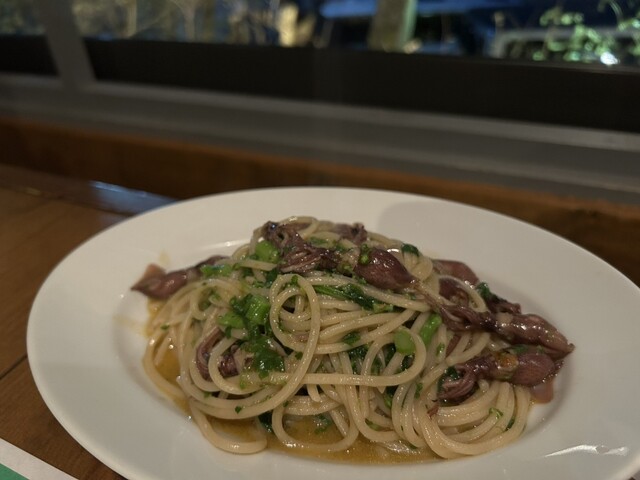 ホタルイカの濃厚な旨みと菜花のほろ苦さが絶妙なバランス。麺はアルデンテで、オイルベースのソースとよく絡んでいます。春の訪れを感じる爽やかな味わいでした。