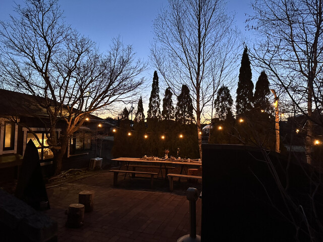 軽井沢で宿泊した東急ハーヴェスト軽井沢VIALAから夜お散歩をしていたら、何やら電球で照らされたおしゃれな空間が。よく見ると、ドーナッツ屋さん?