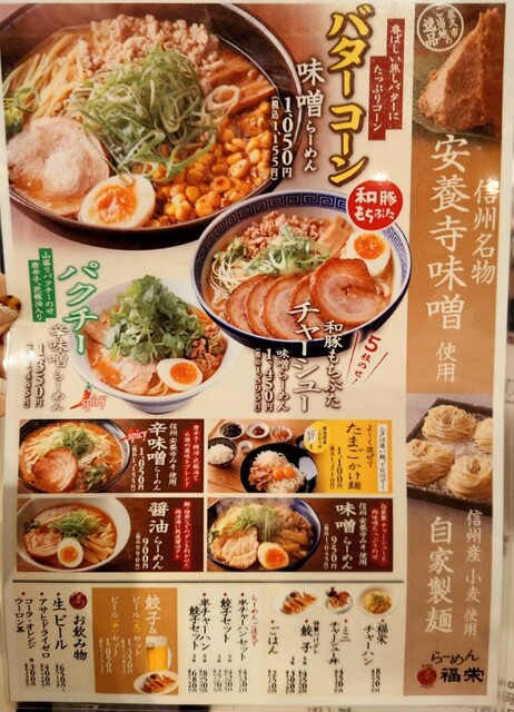 【福栄味噌らーめん★5つのこだわり】 店内自家製麺 信州産豚チャーシュー 2年熟成味噌 信州産たまご 濃厚スープ 北陸新幹線軽井沢駅南口からすぐ! |