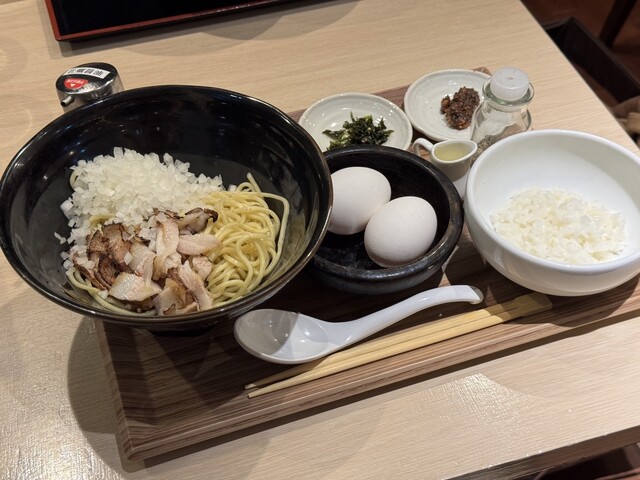 たまごかけ麺は、フライドオニオン、信州味噌、韓国海苔を混ぜてジャンキーに!