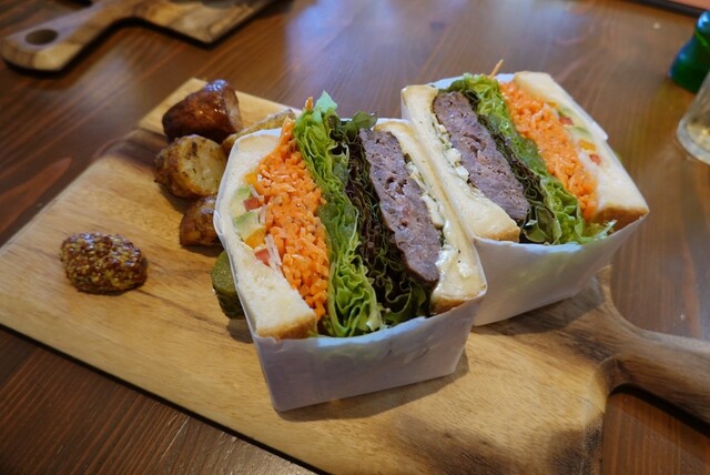 私の誕生日に軽井沢旅行を相方としており、アウトレットに行く日のランチに訪問。 アウトレットとは駅を挟んで反対側にあります。 ◼︎ ベジビエバーグサンド(2,250円) ... 詳細を見る