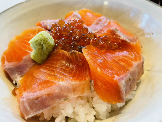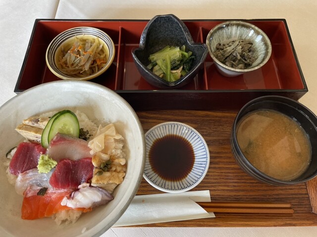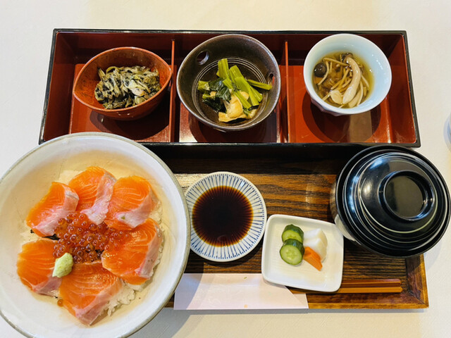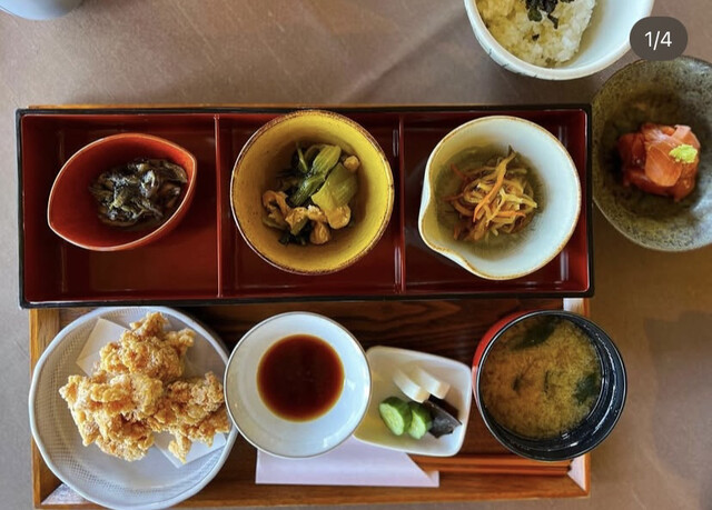ランチで、マグロ漬け丼・竜田揚げをいただきました!竜田揚げは揚げたて・熱々で美味しかったです。マグロの上の、すりおろしわさびは長野県のわさびプライドを感じました。全体的に美味しくいただくことができ、軽...