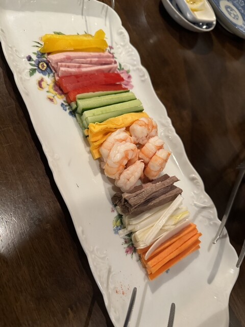 ・クレープ包み(にんじん、ねぎ、エビ、ハム、パプリカ、きゅうりなど)
