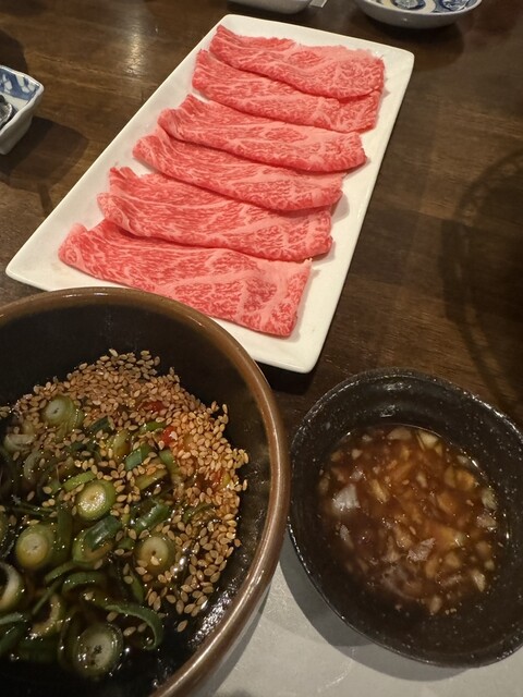焼きしゃぶしゃぶ 左が柑橘系のタレ 右は味噌ダレ
