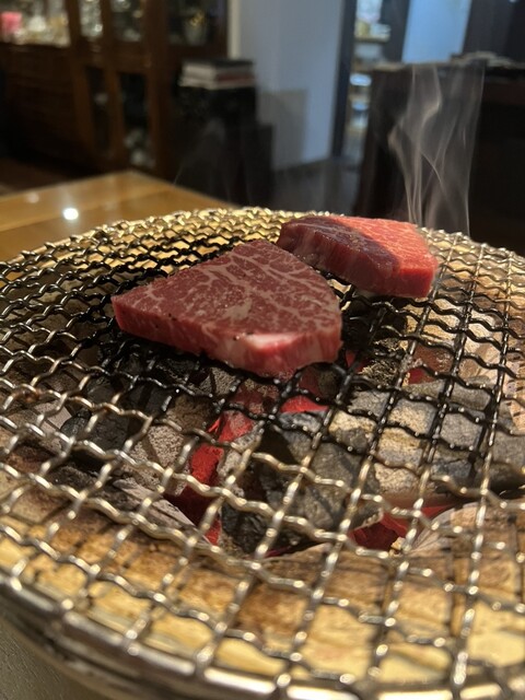 ・メインの焼き肉、シャトーブリアンやモモなどかなりの厚切りで、炭火の七輪で焼きます。美味