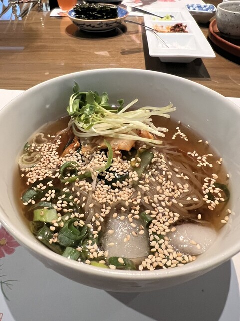 ・メインの次の冷麺、麺は細麺だが、コシがすごい。あっさり、一瞬で食べきれます。もう一選択はご飯と辛い味噌汁、妻が食べましたが新米を上手く炊いてこちらもとても美味しかったそう