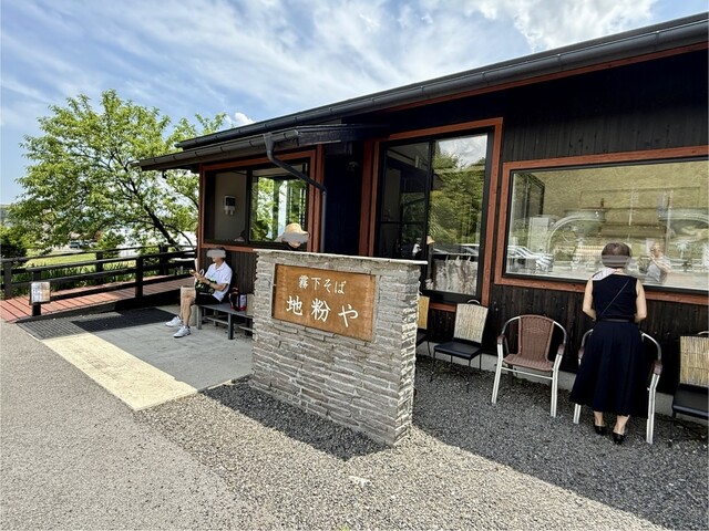 こちらは浅間山の麓、軽井沢と小諸の中間地点での御代田町に位置する景観の良いお蕎麦屋さん。 入口脇のベンチで待つもいいし、店先の日陰で待つも良し。