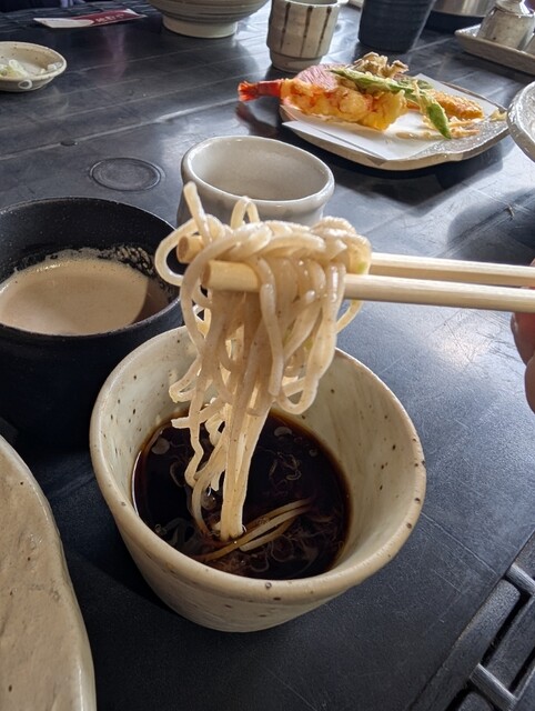 そばは好きな細めでコシがありしっかりした歯ごたえ、つゆ出汁、くるみダレ、そして、蕎麦湯までとてもおいしくいただけました。