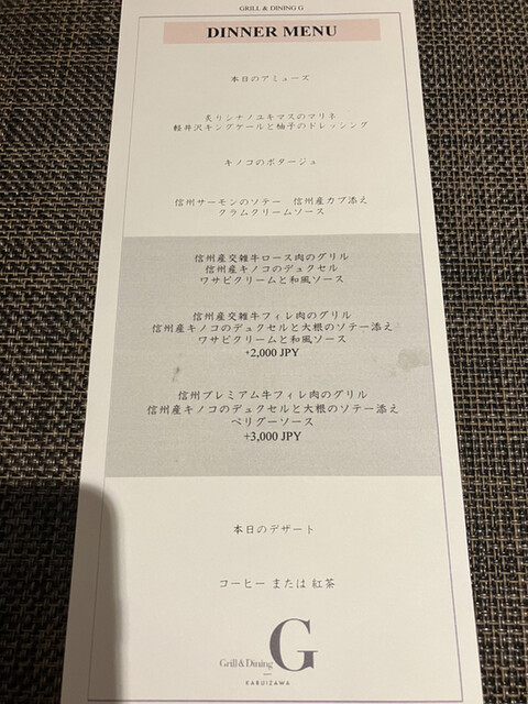 軽井沢にある「Grill & Dining G」さんを訪問。