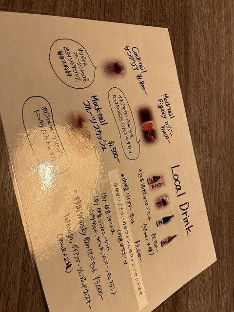| ドリンク | 日本酒あり、焼酎あり、ワインあり、カクテルあり、ワインにこだわる |