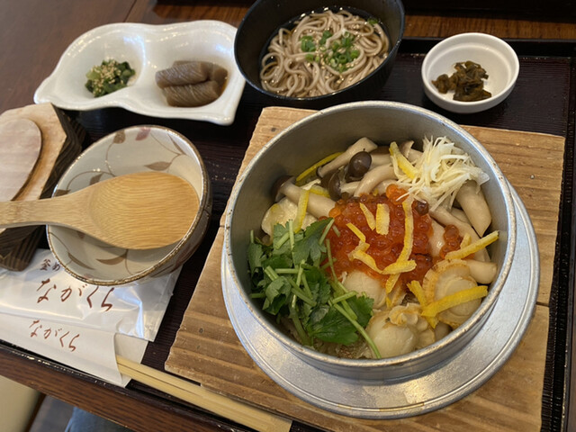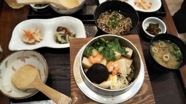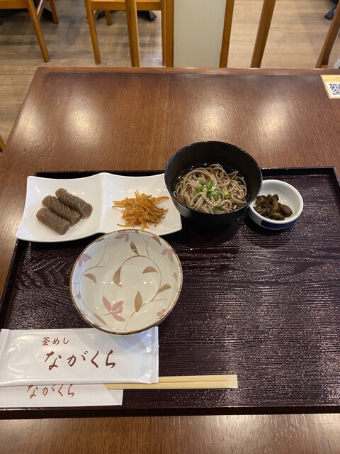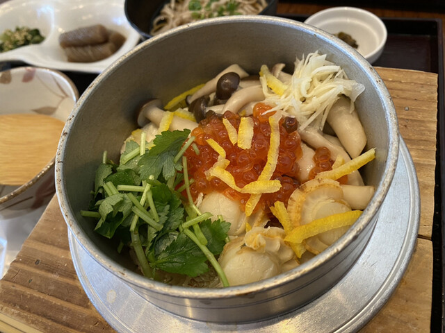 釜飯は20分かかるので少し待ち時間が発生しますが、その間にセットのお蕎麦や漬物を出してくれました。