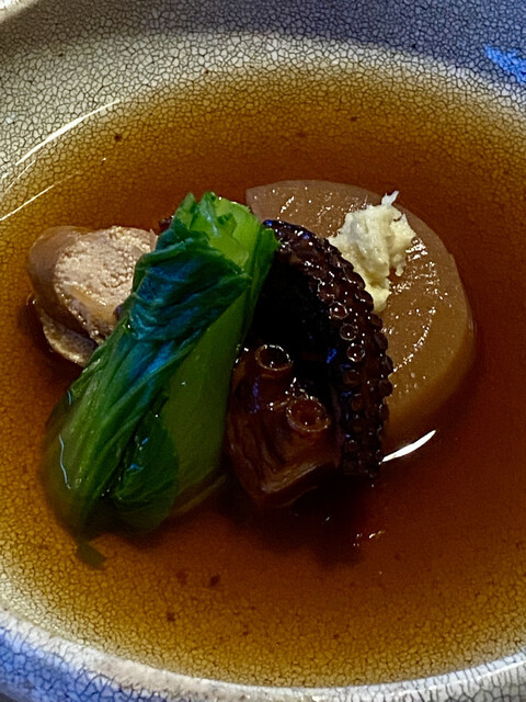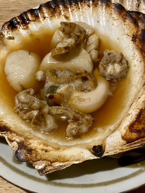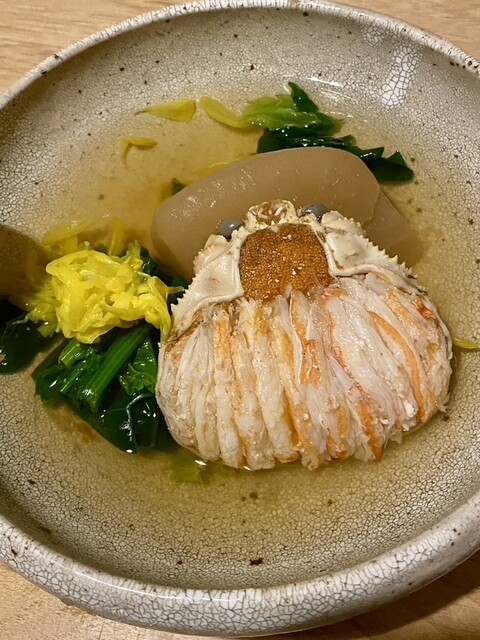 外子、蟹肉を甲羅に詰めて出汁で温めた